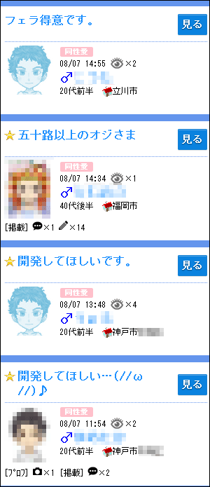 ハッピーメールのゲイ会員「掲示板書き込み」一覧