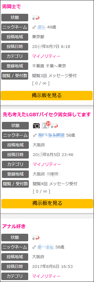 ゲイ会員の「掲示板書き込み」検索の仕方