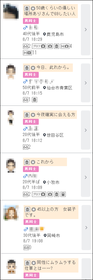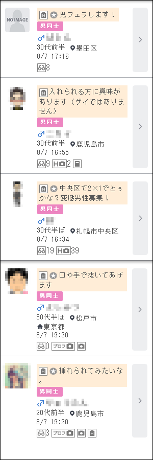ゲイ会員の「掲示板書き込み」検索の仕方